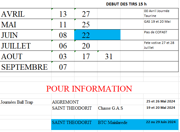 Si vous souhaitez vous initier au tir au pigeon d’argile venez nous voir on discutera comment s’organiser. Avec l'aide de la municipalité, des sponsors et de tous les bénévoles, le Club essayera d’organiser une journée ball-trap ((buvette et restauration ouverte à tout le monde avec un concours au mois de juin ou juillet (voir calendrier) ouvert à tous ses membres et dans une ambiance conviviale. conviviale.