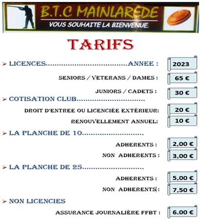 Le tir au club est ouvert aux licenciés de la FFBT ou aux titulaires d'une assurance journalière délivrée sur place les journées de tir.