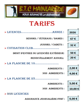Le tir au club est ouvert aux licenciés de la FFBT ou aux titulaires d'une assurance journalière délivrée sur place les journées de tir.